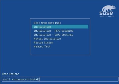 Instalar o sistema Suse/OpenSuse remotamente com o protocolo ssh ou vnc é muito simples. Basta inserir alguns parâmetros na opção de boot do grub. A seguir os principais parâmetros: