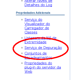 Selecione “Serviço de Debugação” em Propriedades Adicionais;