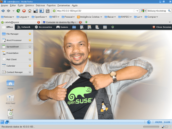 Acabo de testar a nuvem eyeOS. no openSUSE 11.3 vale a pena testar… “Este projeto é um sistema para escritórios, de código aberto, gratuito e multi-plataforma que utiliza os conceitos da Cloud computing, baseado na área de trabalho de um sistema operacional. É licenciado sobre a licença GPL. O pacote básico inclui uma estrutura completa de um sistema operacional e algumas aplicações de escritório, como um processador de texto, calendário, gerenciador de arquivos, programa mensageiro, navegador, calculadora, entre outros.