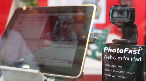 “Muita gente reclamou da falta de uma câmera no iPad. Mas será que plugar no tablet uma webcam semelhante às usadas em PCs seria uma boa solução? Essa é a ideia de uma companhia chamada Photofast. Ao contrário do que diz a imagem, como nota o Gizmodo, a câmera não terá absurdos 200 megapixels, mas apenas 2. O acessório ainda promete transmissão de vídeo em tempo real com 640×480 pixels de resolução, em programas de comunicação instantânea.