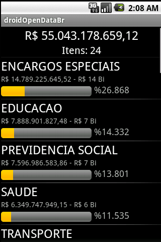 Enquanto Lammers e Crackers utilizam o seu conhecimento para prejudicar as pessoas e se autointitular, do outro lado Hackers (pessoas do bem) trabalham voluntariamente para prover informações públicas para a população com qualidade e objetividade. Com isto, acabo de disponibilizar no Google Market o software droidOpenDataBr que desenvolvi em uma noite após uma tarde de FISL 12 em Porto Alegre. Este projeto foi desenvolvido em uma mesa de bar tomando cerveja e conversando com o Maluco (Thiago Rondon), e tem como objetivo de prover uma ferramenta baseado em software-livre para plataforma Android para manipulação de dados abertos governamentais. Resumidamente com este aplicativo, podemos acompanhar os investimentos e gastos públicos com apenas alguns toque no touch screen do dispositivo.