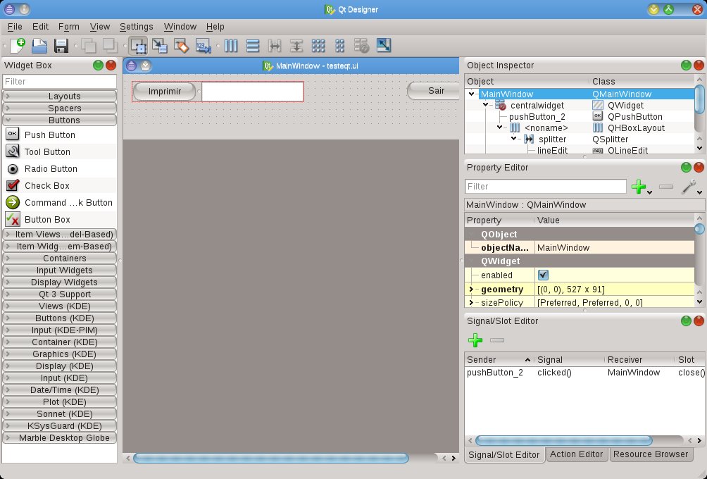 Neste post veremos como criar um primero programa com o famoso QT. Primeiramente no QT Designer crie um formulário e save-o com o nome testeqt.ui.