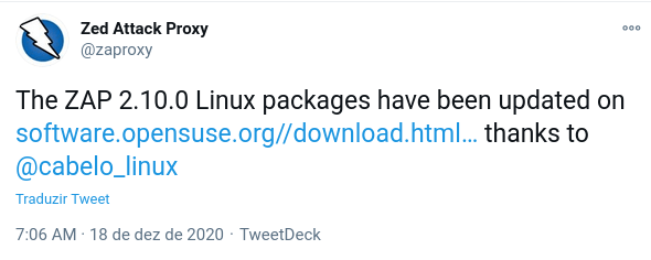 Faço minha parte como militante do software livre e mantenedor oficial dos repositórios Linux OWASP ZAP disponibilizando os pacotes de instalação do software para vários sabores Linux NESTE LINK.