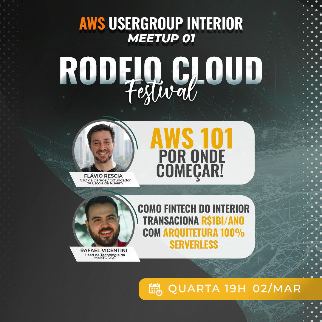 Como membro da iniciativa AWS UserGroup Interior, venho convidar todos do Interior de SP Bebedouro, Araraquara, Sorocaba, Ribeirão Preto e outros municípios para participar do Rodeio Cloud Festival.