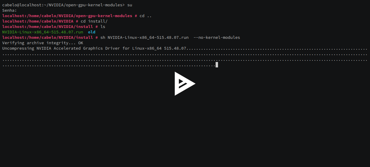 Veremos aqui como instalar o modulo do kernel opensource da NVIDIA, entretanto na versão 515.48.07 o suporte a GeForce e Workstation ainda é considerado de qualidade alfa. Então para forçar a instalação, devemos usar o parâmetro NVreg_OpenRmEnableUnsupportedGpus como veremos a seguir.