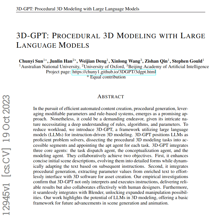 Em minha jornada diária e persistente de vasculhar meticulosamente os artigos científicos publicados, buscando identificar aqueles que, inquestionavelmente, moldarão o panorama do futuro, quero destacar de forma especial o 3D-GPT.