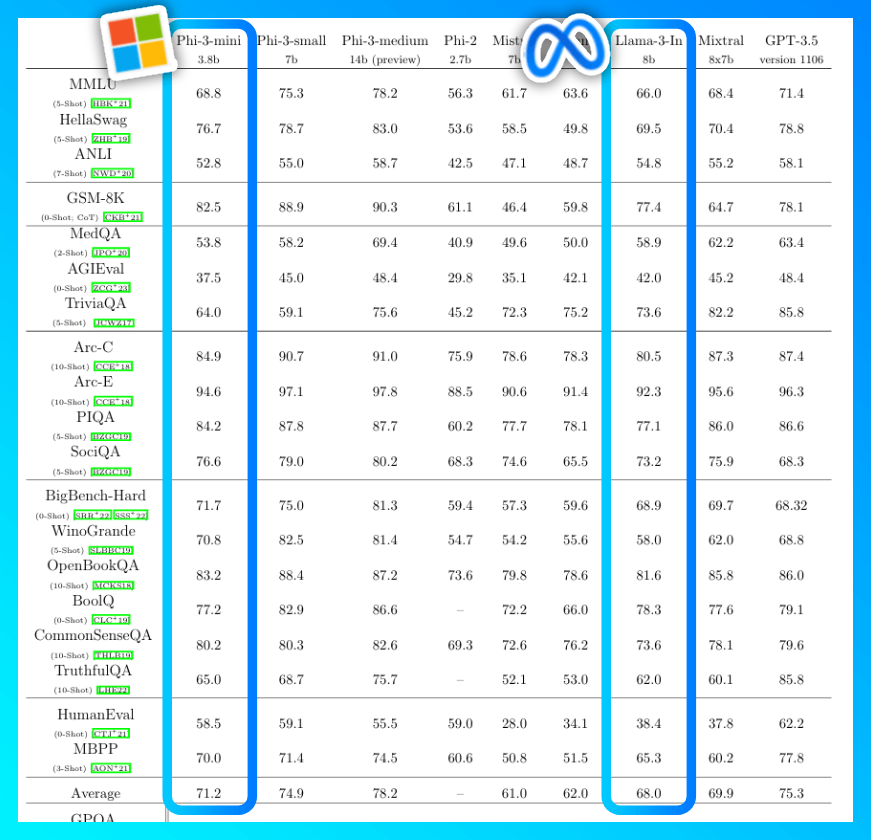 Enquanto isso, na segunda-feira, dia 23 de abril, a Microsoft lançou o Phi-3, marcando sua entrada no campo com uma proposta ligeiramente diferente. Com um foco em versatilidade e acessibilidade, o Phi-3 começa com o modelo Mini, que possui 3,8 bilhões de parâmetros. Esta versão é seguida por outras mais robustas, como o Phi-3 Small e o Phi-3 Medium, com 7 e 14 bilhões de parâmetros, respectivamente. A estratégia da Microsoft parece inclinar-se para a flexibilização do uso da IA, com modelos que não só operam eficazmente em plataformas robustas de nuvem, como Azure e Hugging Face, mas também em dispositivos pessoais, tornando a tecnologia mais acessível ao público geral.