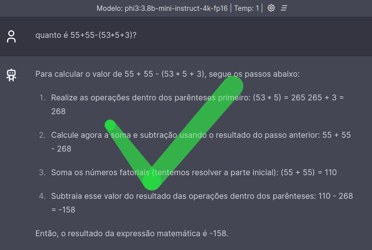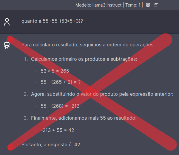Algumas vezes o LLAMA 3 8B errou na simples equação 55+55-(53*5+3)?