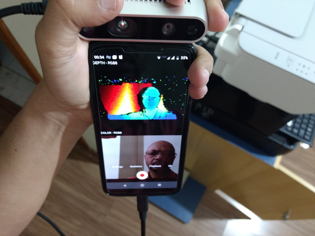 Com a abstração da api nativa Intel Realsense para Android, é possível criar aplicativos nativos (C / C ++) e Java/Kotlin para Android. bastando apenas incluir o arquivo Android Archive (librealsense.aar) no seu aplicativo e habilitar a permissão de acesso a câmera. Vale a penas ressaltar que o prejeto disponibiliza API Java baseada em JNI.