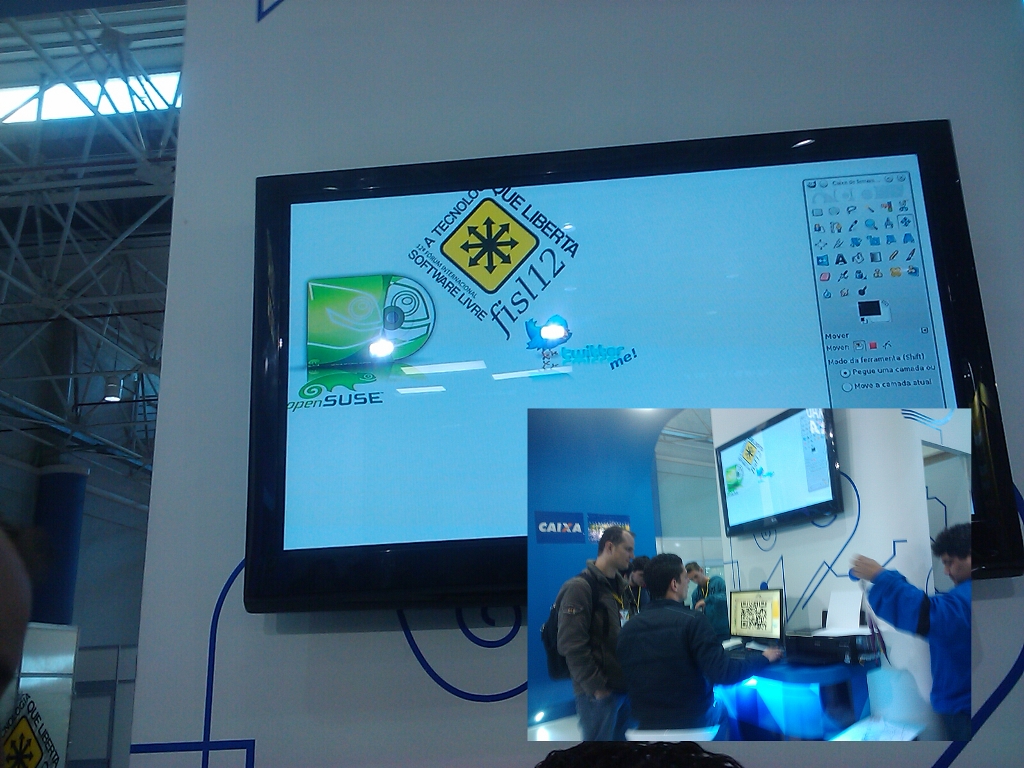 Neste FISL tive uma participação mais ativa, pois além das palestras sobre Realidade Aumentada e Android, fui responsável voluntáriamente pelo projeto das distribuições de camisetas com QRCODE no stand da Caixa Econômica Federal, graças ao projeto TwitterMe desenvolvido para a plataforma Android publicada como de domínio público.